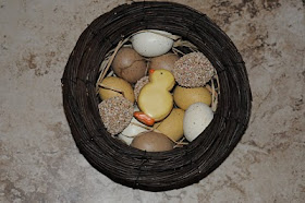 This Easter was a special one, it was my daughters first Easter. We had an Easter egg hunt for both my four year son & my 7 month old daughter. The Easter bunny left chocolates everywhere. This fuzzy has been with our family for a couple years now, I thought it was about time she had some lil' eggs of her own.